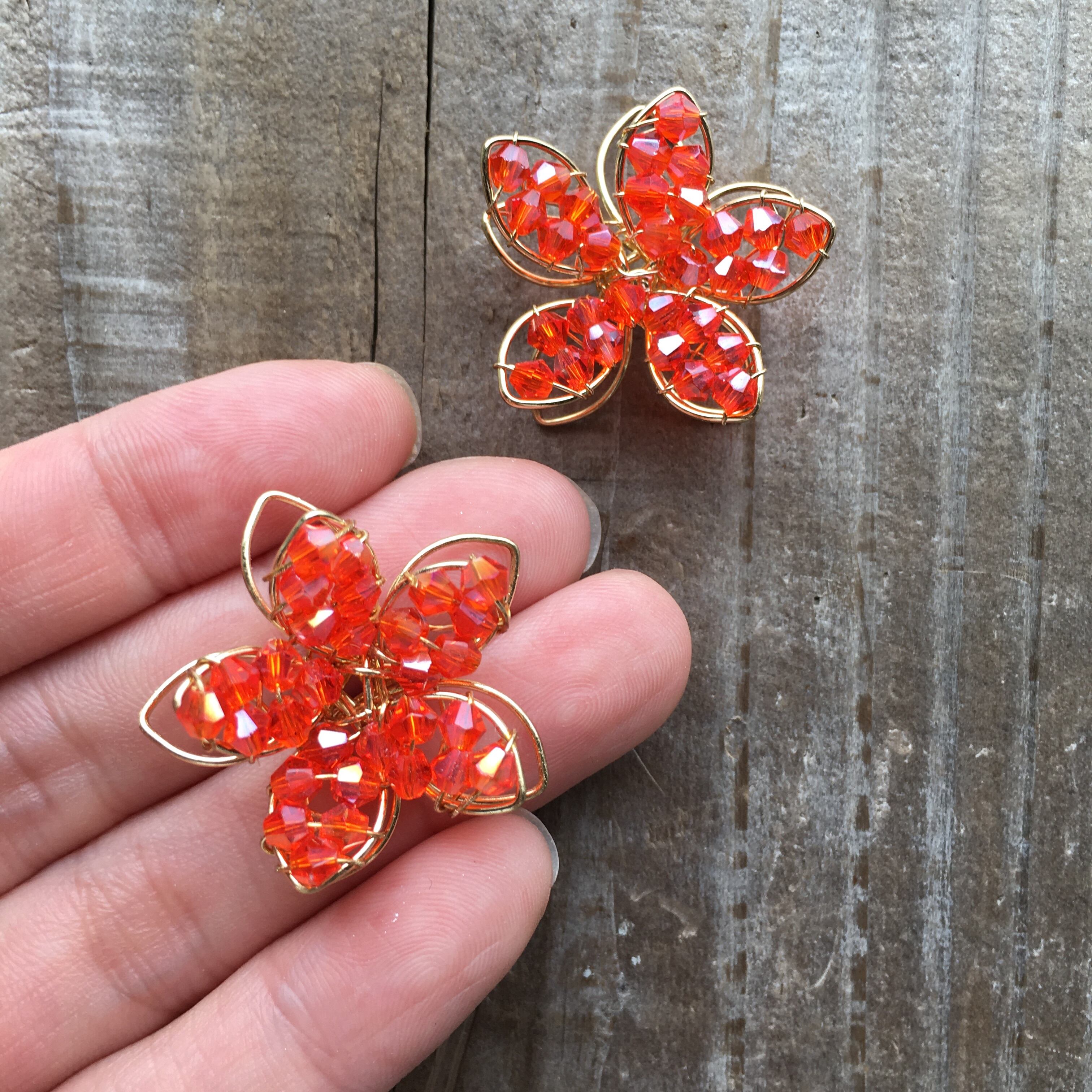 【1個】ワイヤーフラワーパーツ(クリアオレンジ)