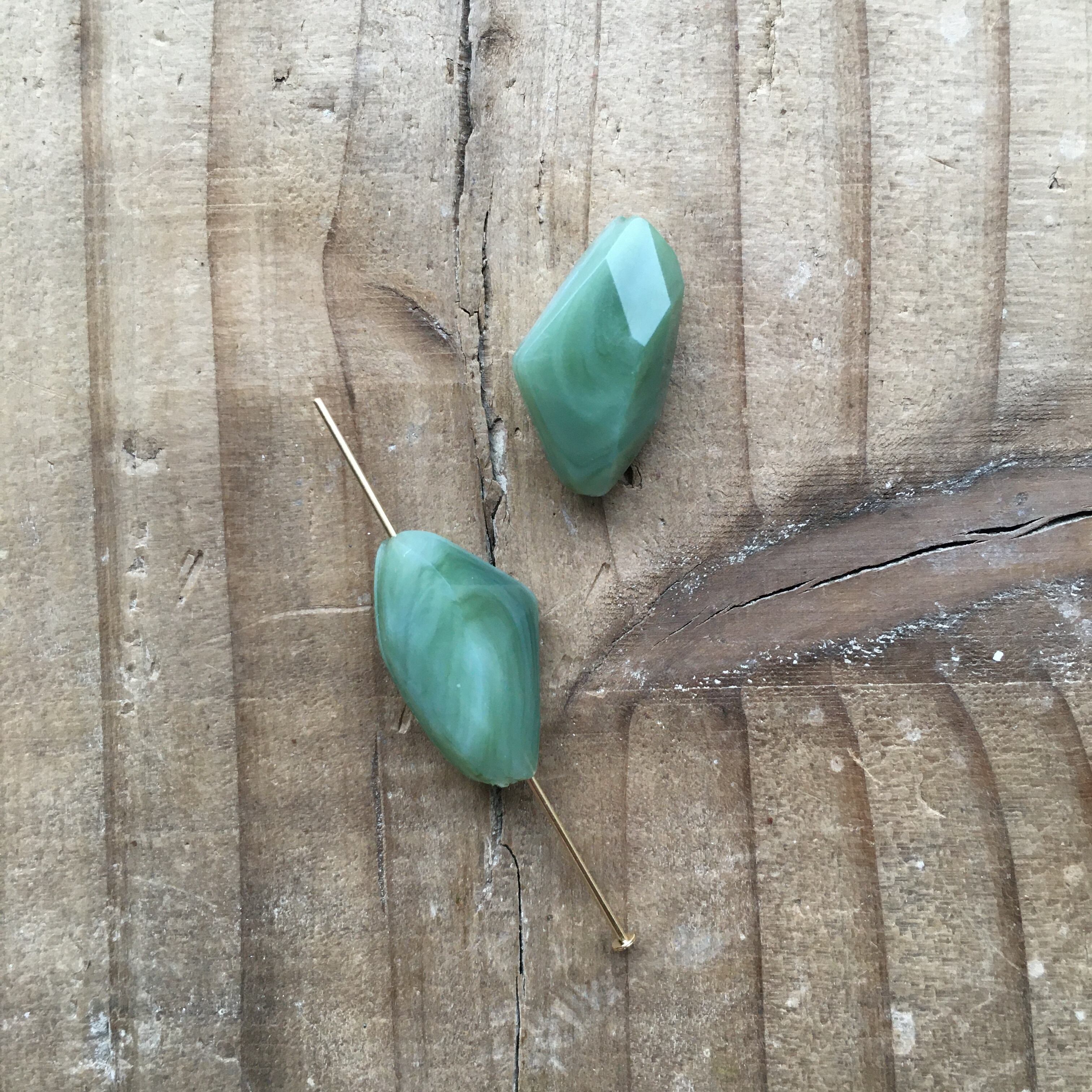【2個】カットデザインアクリルビーズ(フォレストグリーン)