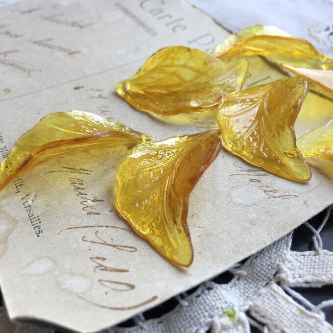 【2粒】37×21mm/ハニーアンバーマーブル/リーフパーツ