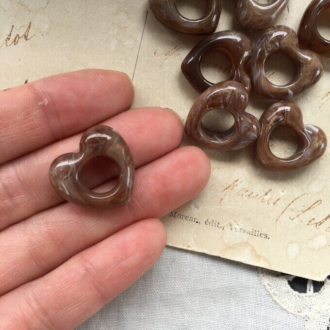 【2粒】19×20mm/マロンマーブル/ドーナツハートビーズ