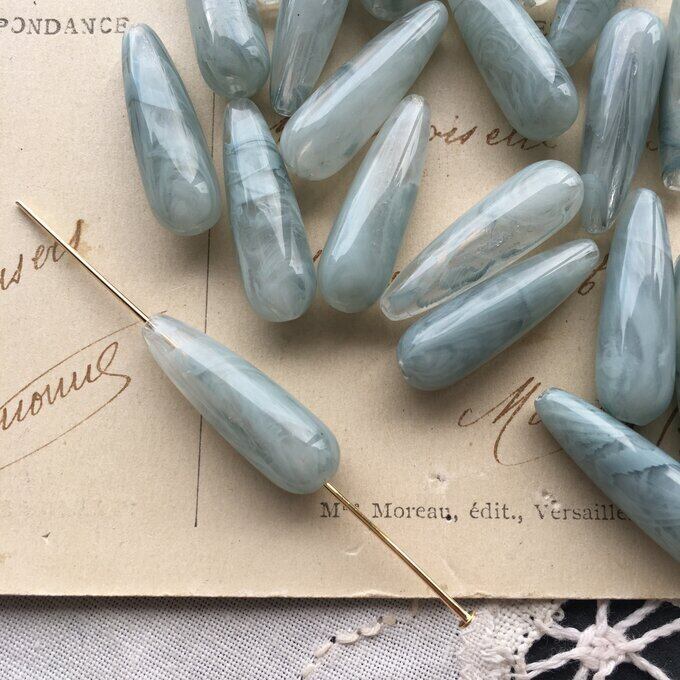 【4粒】26×8.5mm/ミントブルーマーブル/ミニドロップビーズ