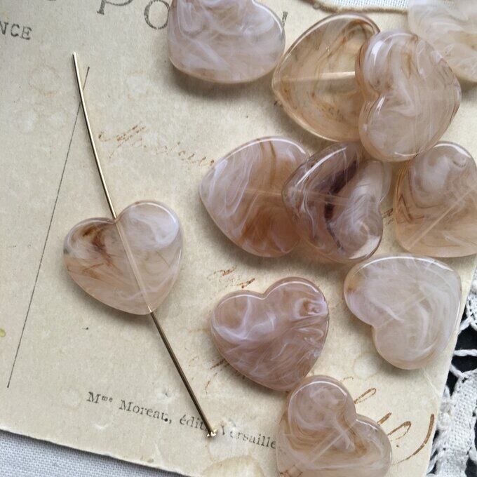 【2粒】20×17mm/クリアベージュマーブル/フラットハートビーズ