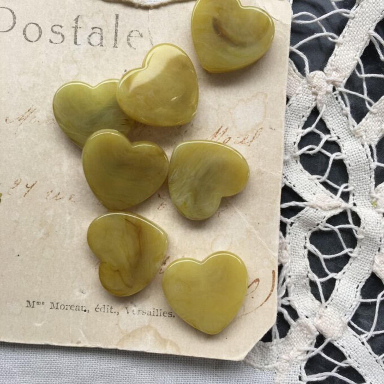 【2粒】20×17mm/ピスタチオマーブル/フラットハートビーズ