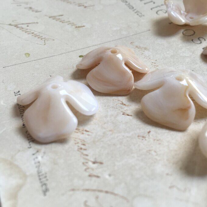【2粒】22mm/ミルクティーマーブル/3枚花びらフラワーパーツ