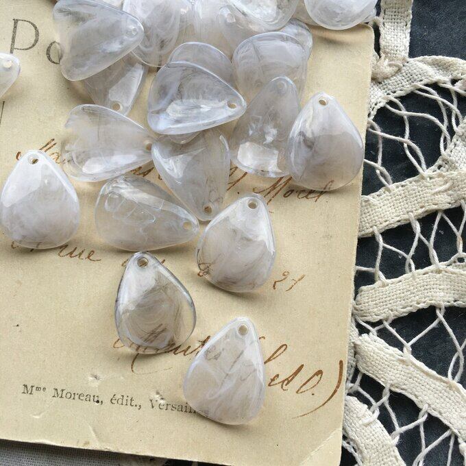 【6粒】小19×14mm/ミルキーグレーマーブル/花びらパーツ