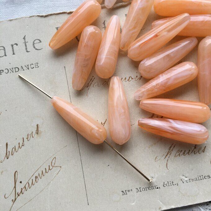 【4粒】26×8.5mm/ミルキーオレンジマーブル/ミニドロップビーズ
