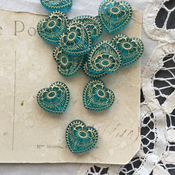 【2粒】18×17mm/クリアブルー/ゴールドラインハートビーズ