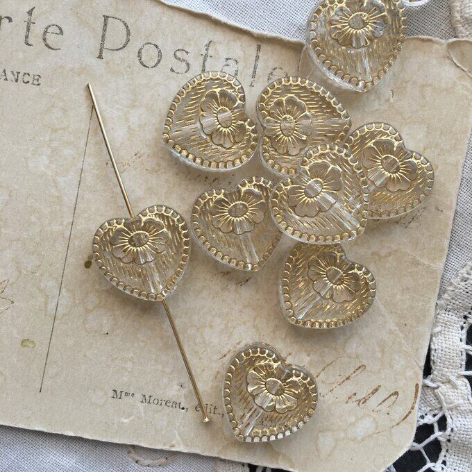 【2粒】18×17mm/クリア/ゴールドラインハートビーズ