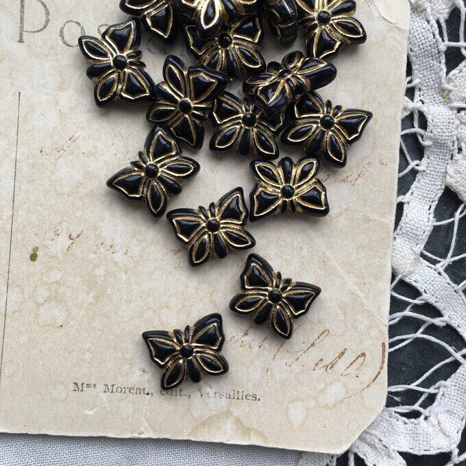 【8粒】11×15mm/ブラック/ゴールドラインチョウチョビーズ