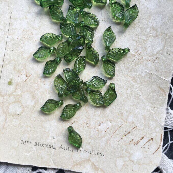 【10粒】9.5×5mm/クリアグリーン/ミニリーフビーズ
